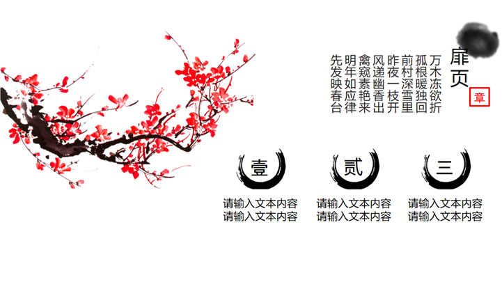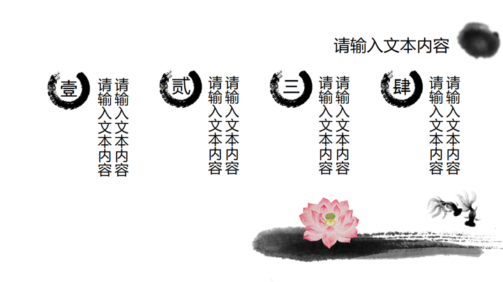 经典水墨古风主题通用PPT模板是一款中国风PPT模板,以内容元素以水墨风格进行呈现,涵盖山峰、花鸟、荷花、梅花、竹子、锦鲤等古风元素,内容以目录为依据,内容文本可自由编辑修改,整套模板前后保持一致,极具中国古典气息,适用于以中国风为主题的场景演示模板。本作品提供pptx格式文件下载,站长素材PPT大全提供精选的PPT模板素材。